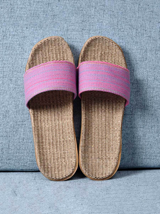 Women's Striped Linen Thick Sole Non-Slip Home Slippers