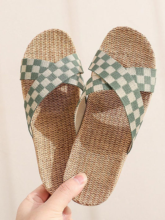 Women's Plaid Linen Thick Sole Non-Slip Home Slippers